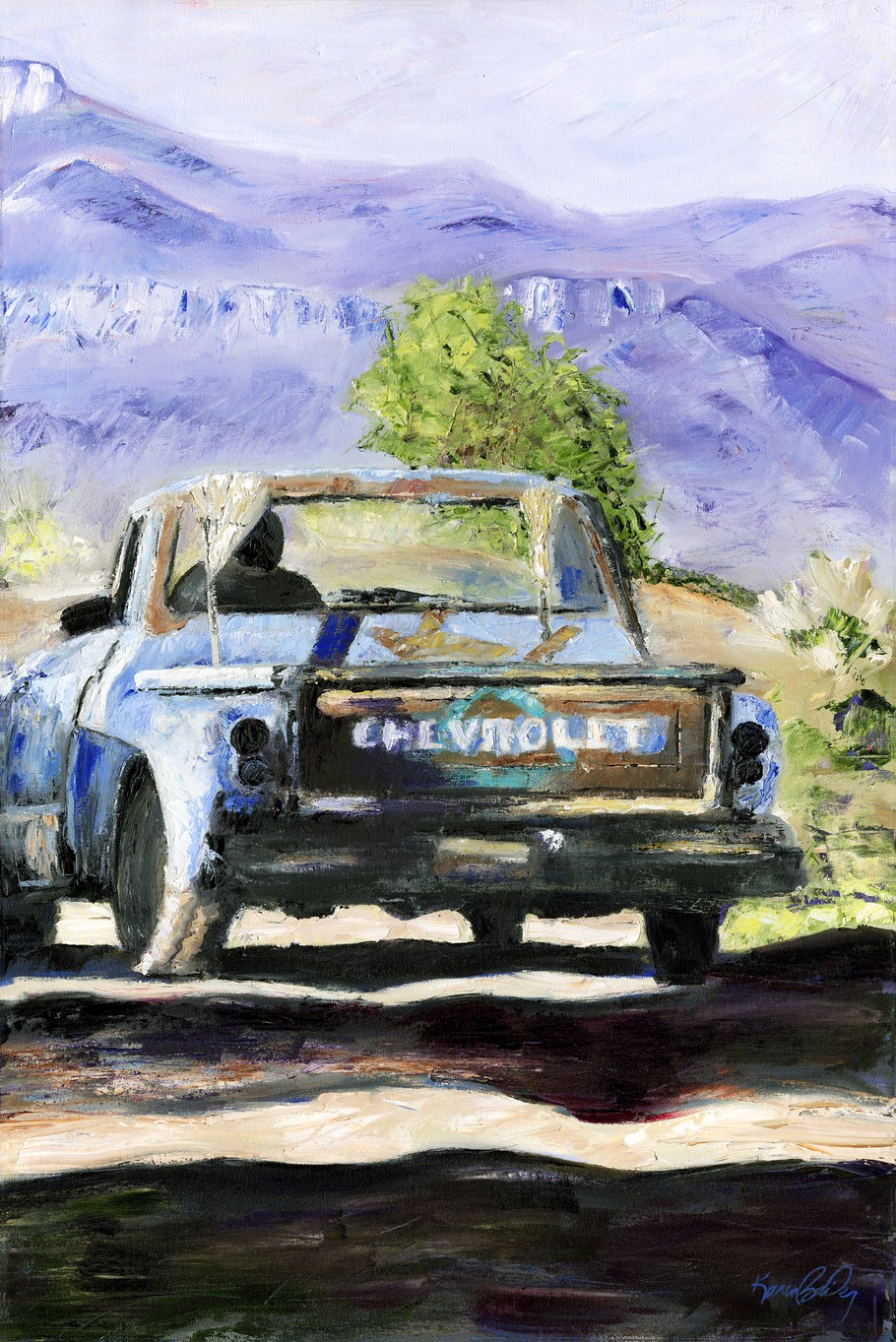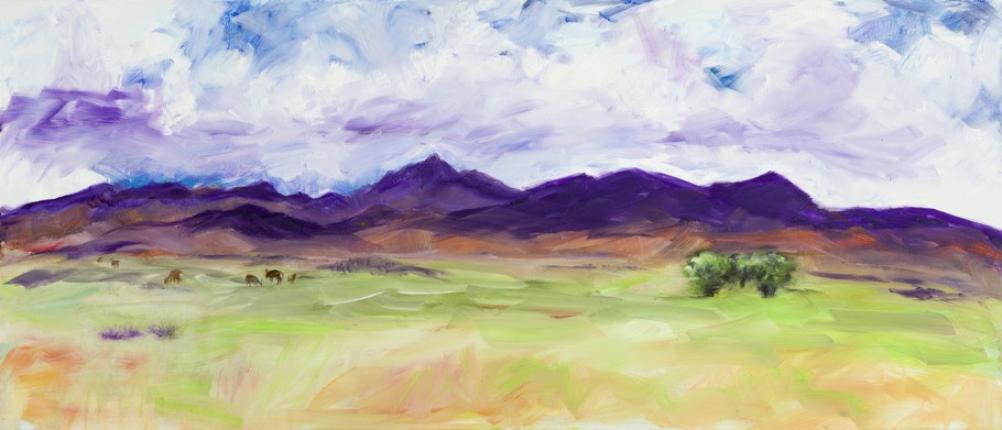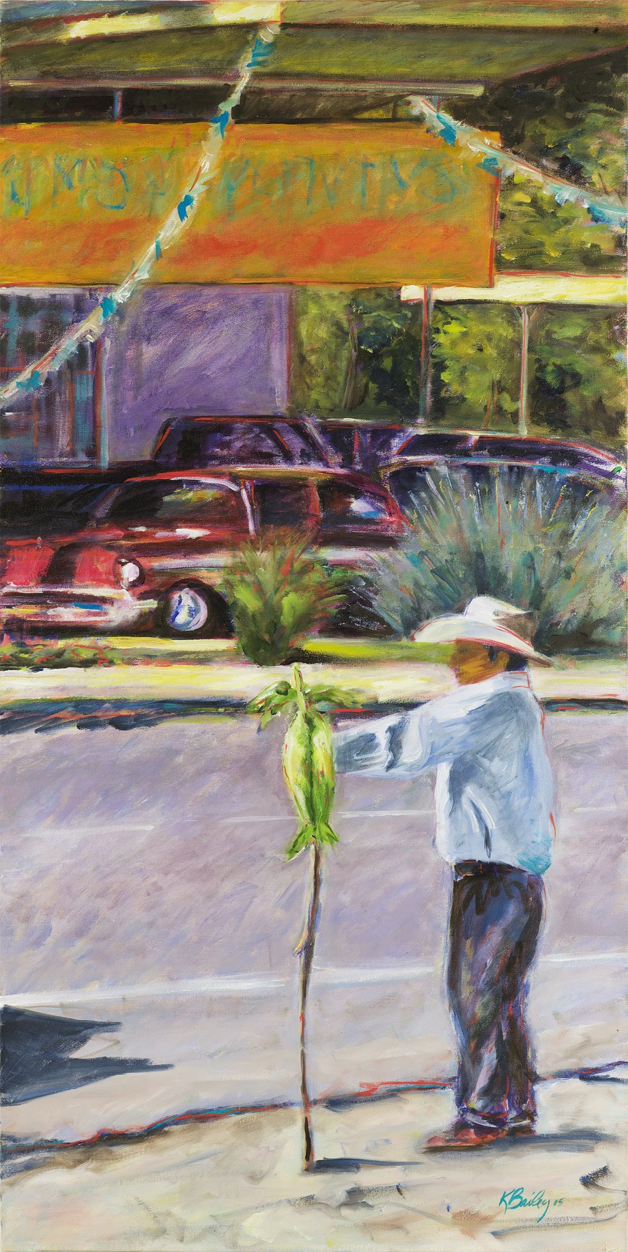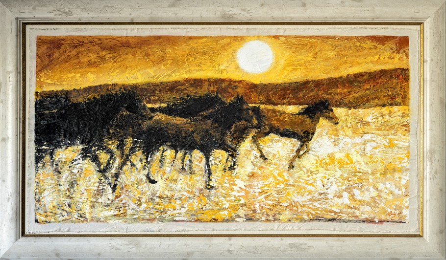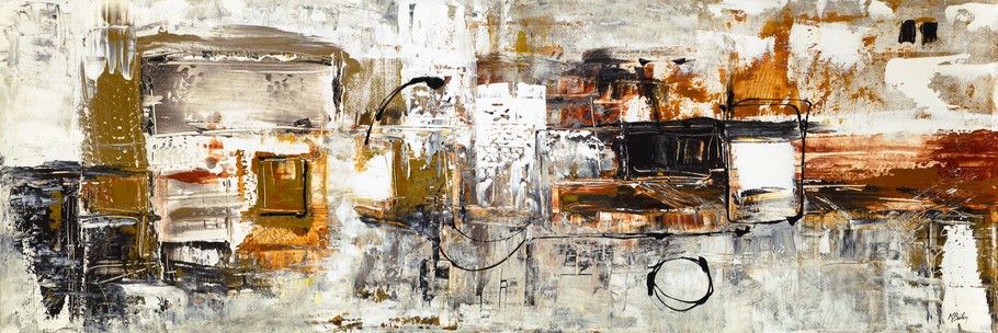 Size is 24" x 48" Acrylic and Oil on canvas mounted in a 1 1/2" black floater frame (28" x 52" framed)