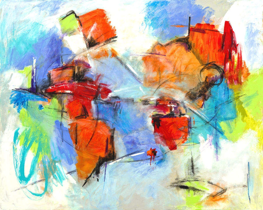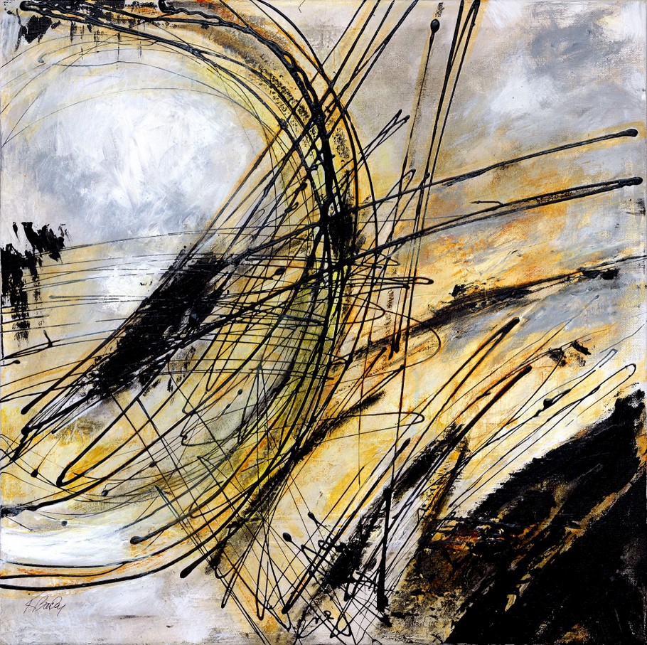 Acrylic on Arches Text Wove wrapped mounted in a 1 1/2" black floater frame